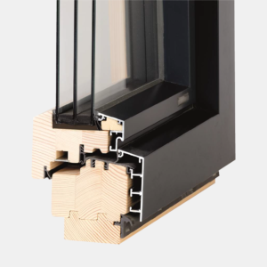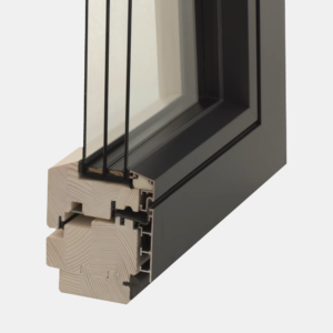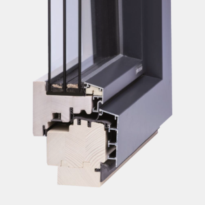 das erste Passivhaus-Fenster innen und außen bündig. Sehr schmale Ansichten durch optimierte Rahmengeometrie. Aussenverglast mit zusätzlicher Glasdichtung und Aluschale mit PU-Dämmkern als Glasvorsatz serienmässig.